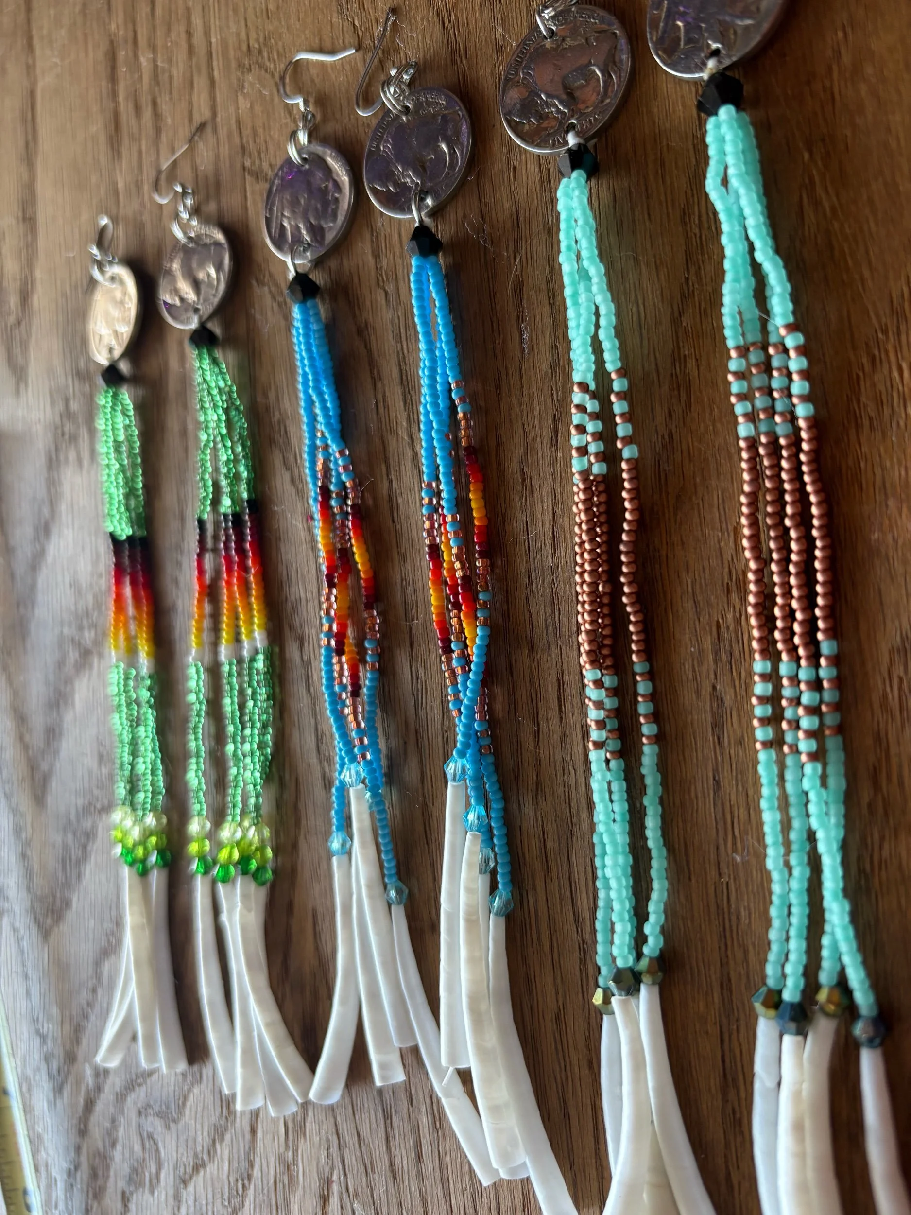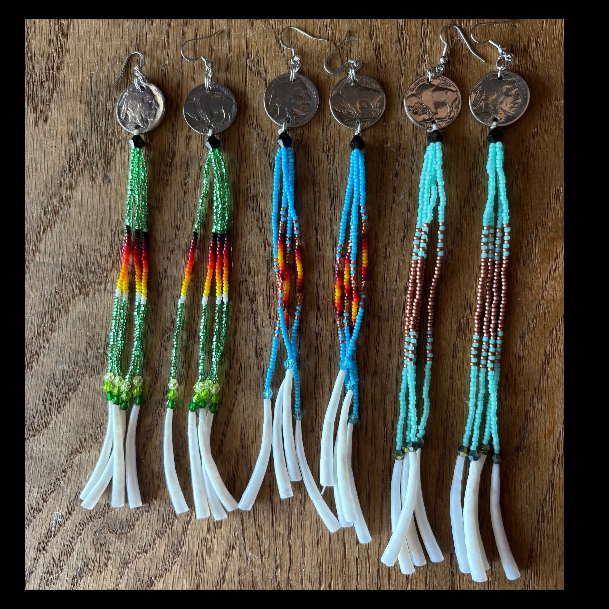 With dentalium shells, fire polished bicone beads.