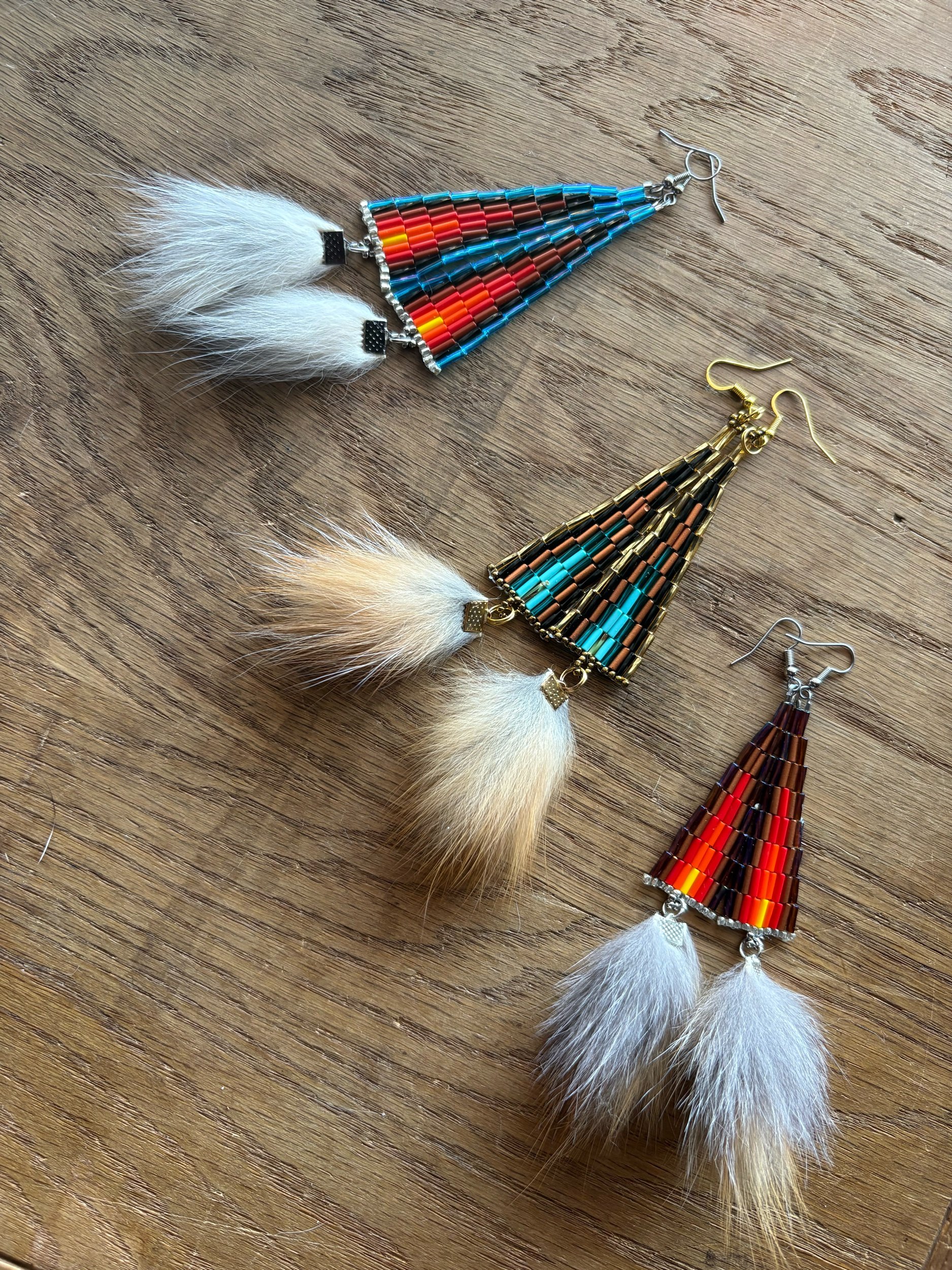 Mini bugle beads with various mini poms: