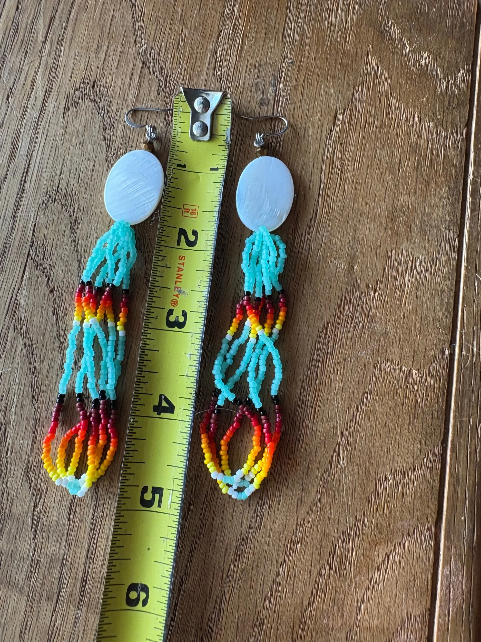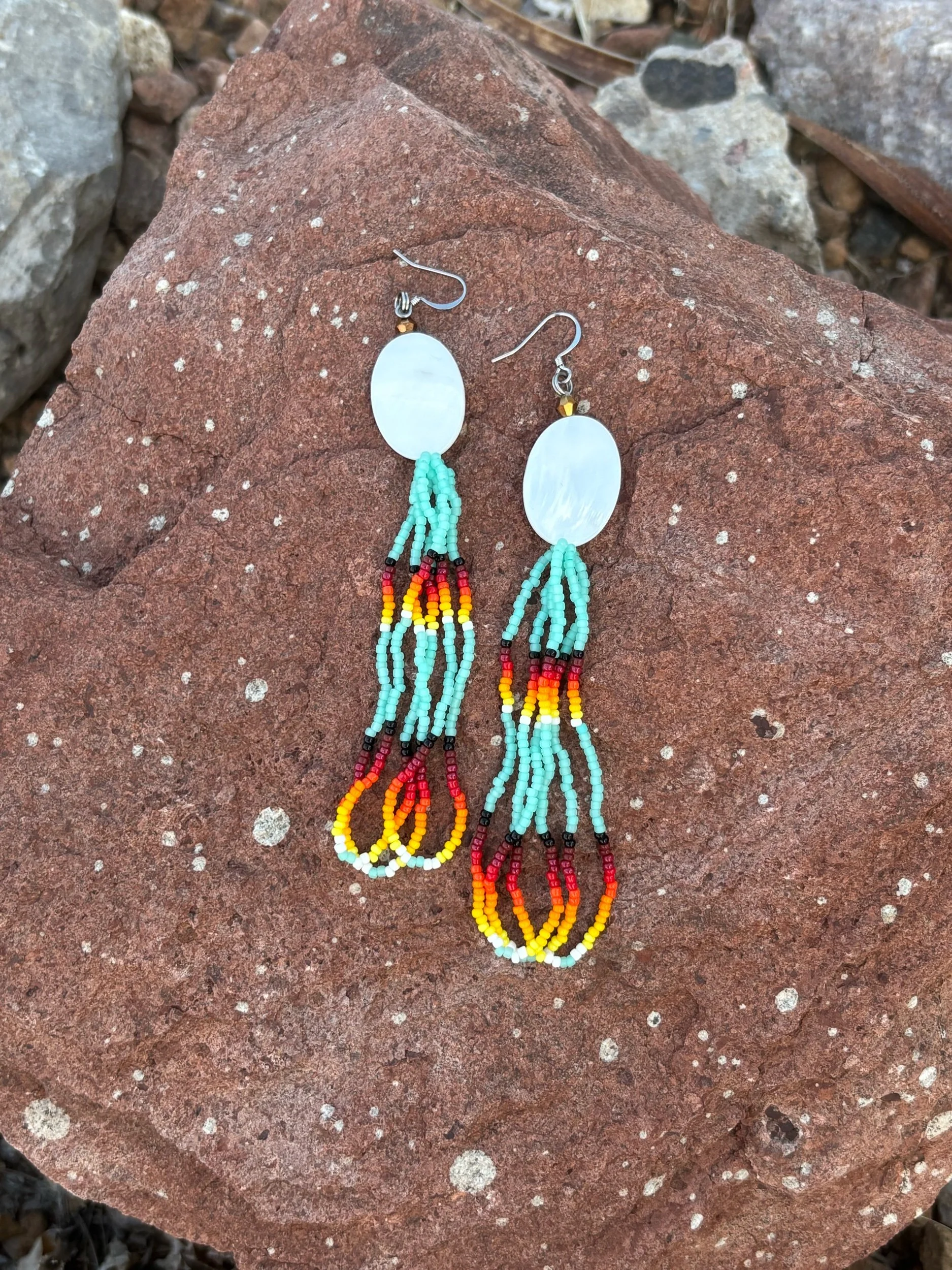 Mother of pearl beads with frosted mint fire design beads.