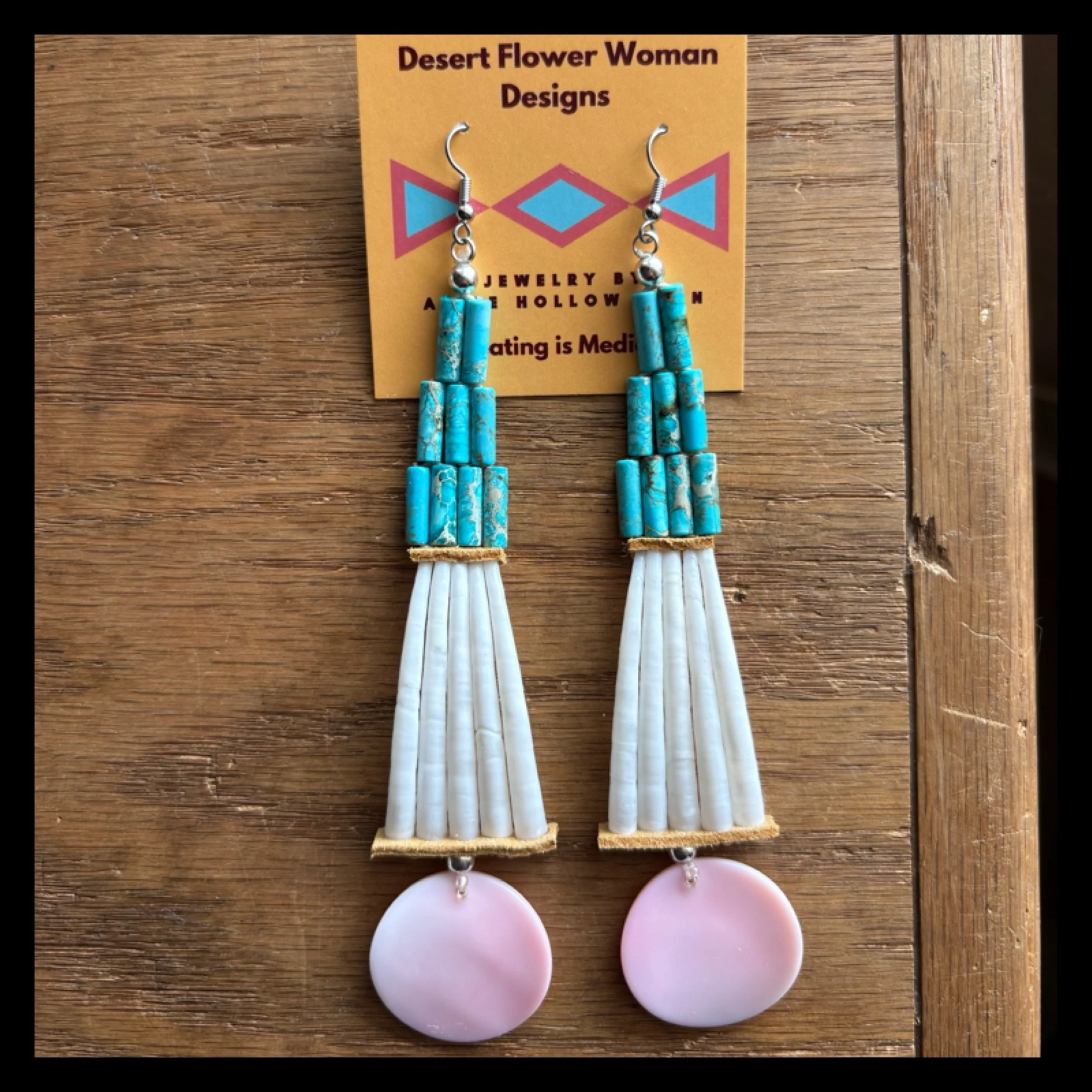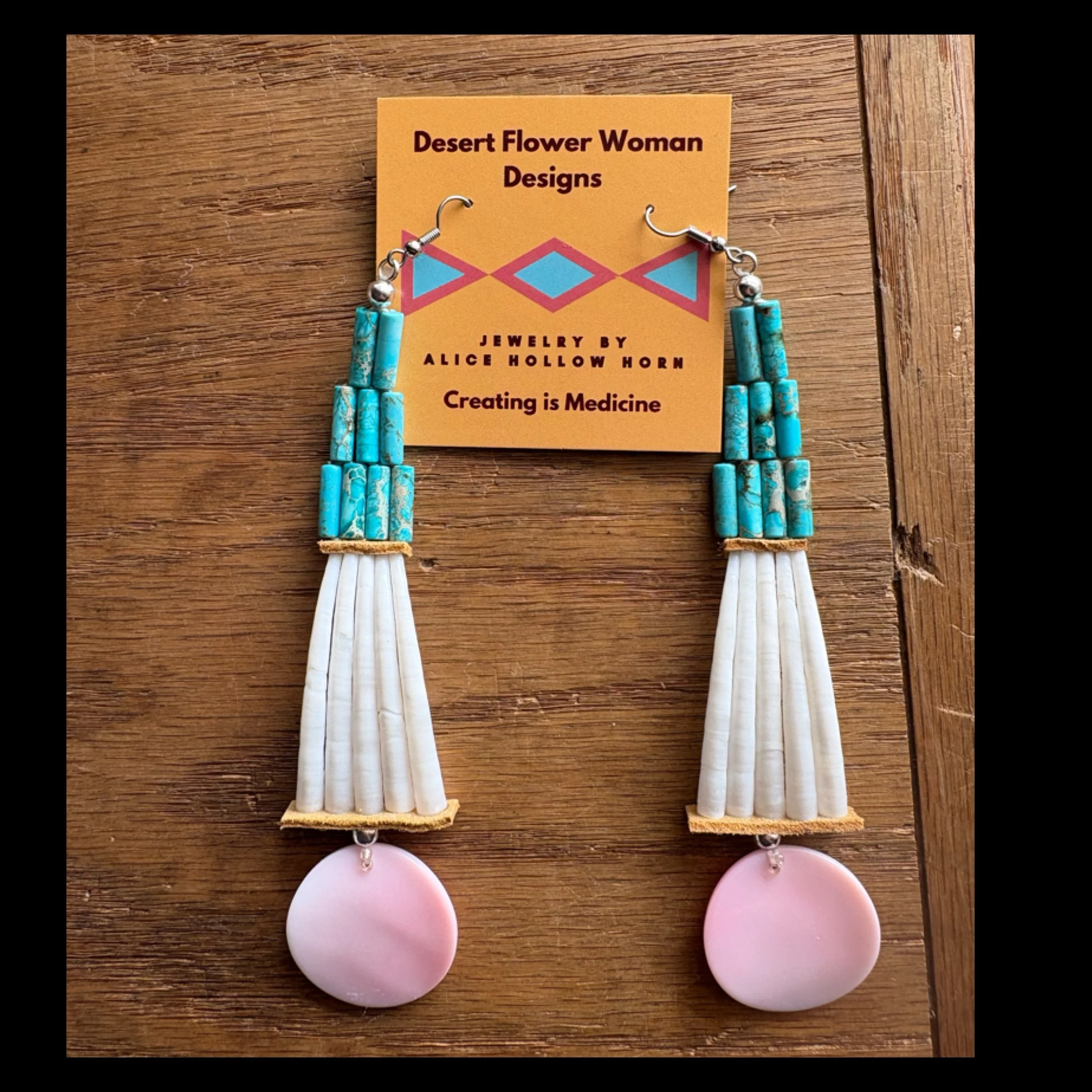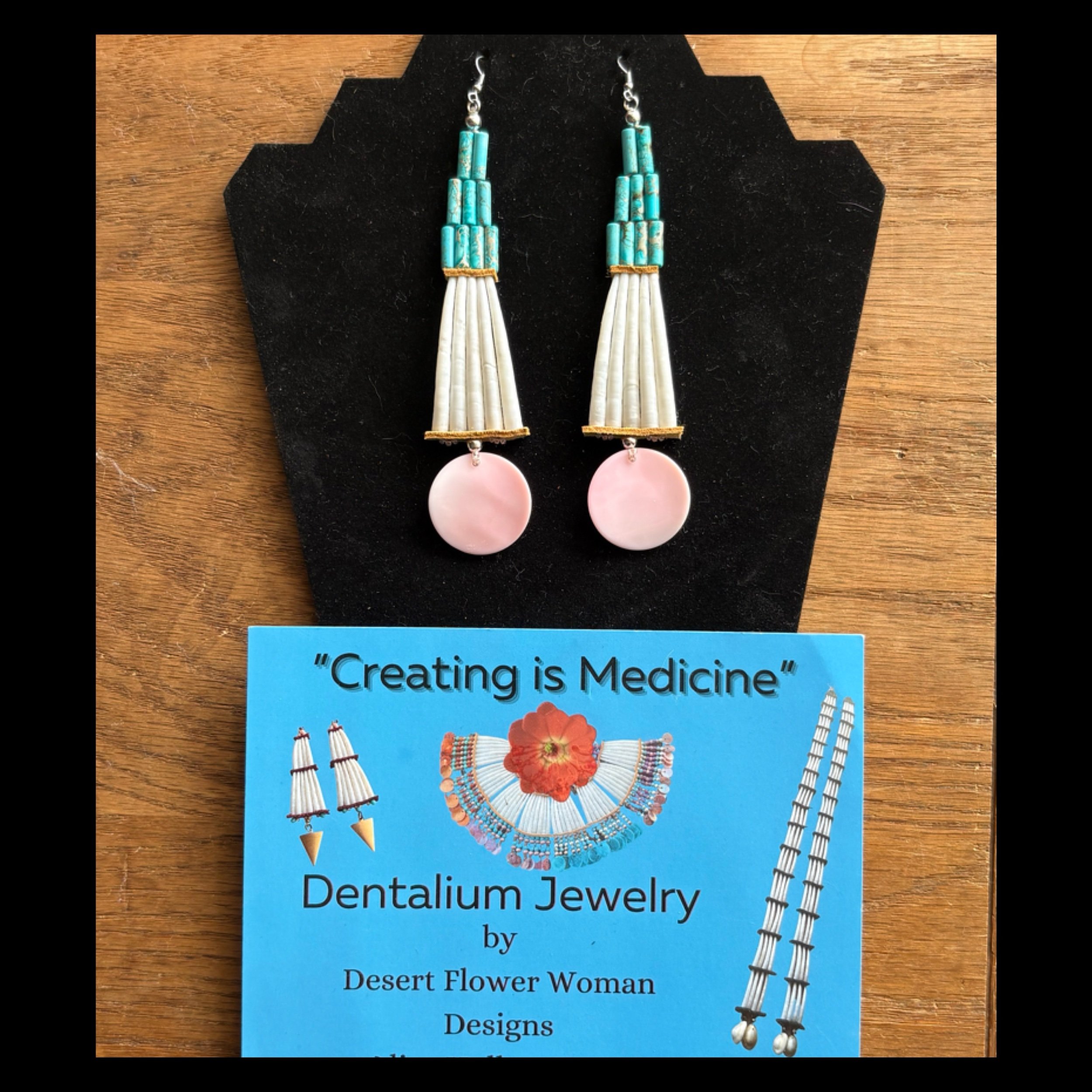 SHOP › Ocean Dentalium & Pink Conch Image 1 of 4 Image 2 of 4 Image 3 of 4 Image 4 of 4 Ocean Dentalium & Pink Conch $90.00 Pink conch shells, ocean blue bugle beads, dentalium shells, leather and silver beads. Purchase Added! Pink conch shells, ocean blue bugle beads, dentalium shells, leather and silver beads.