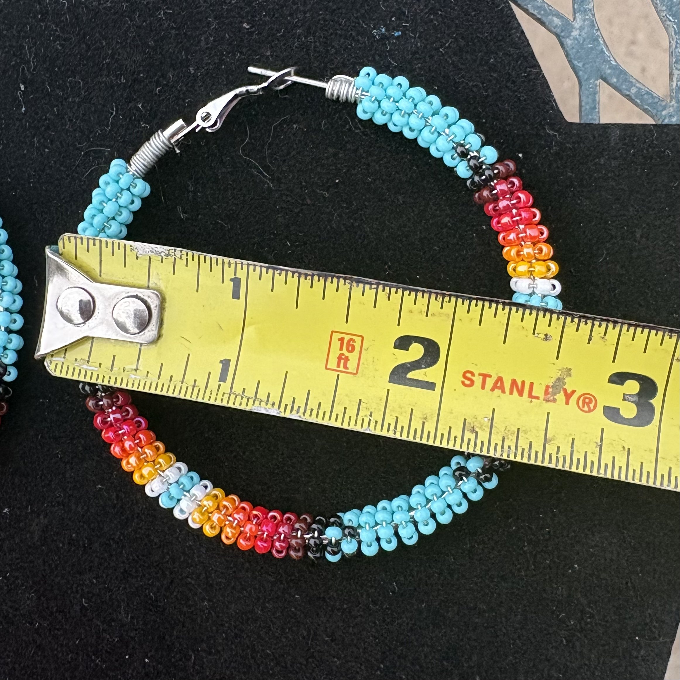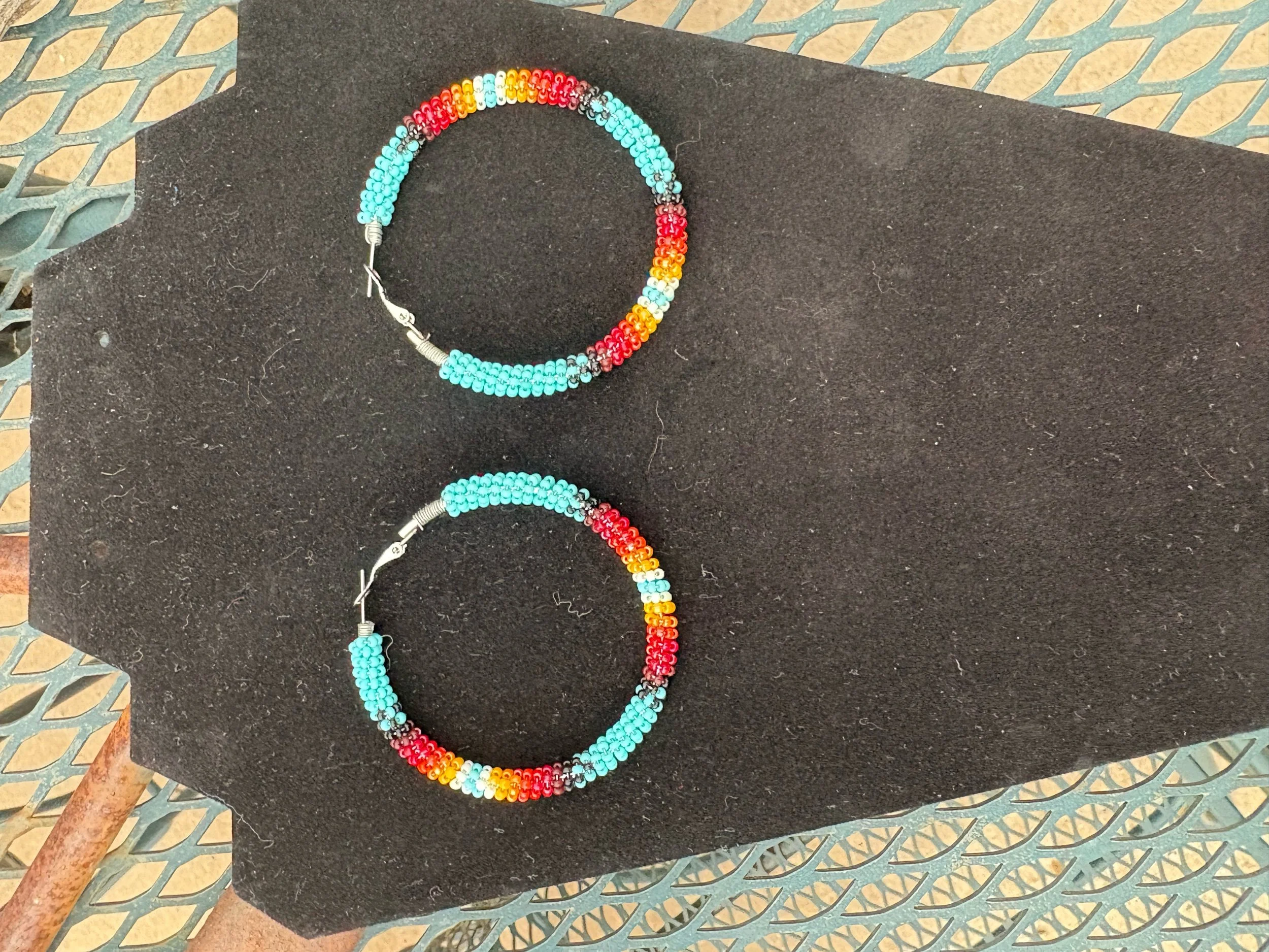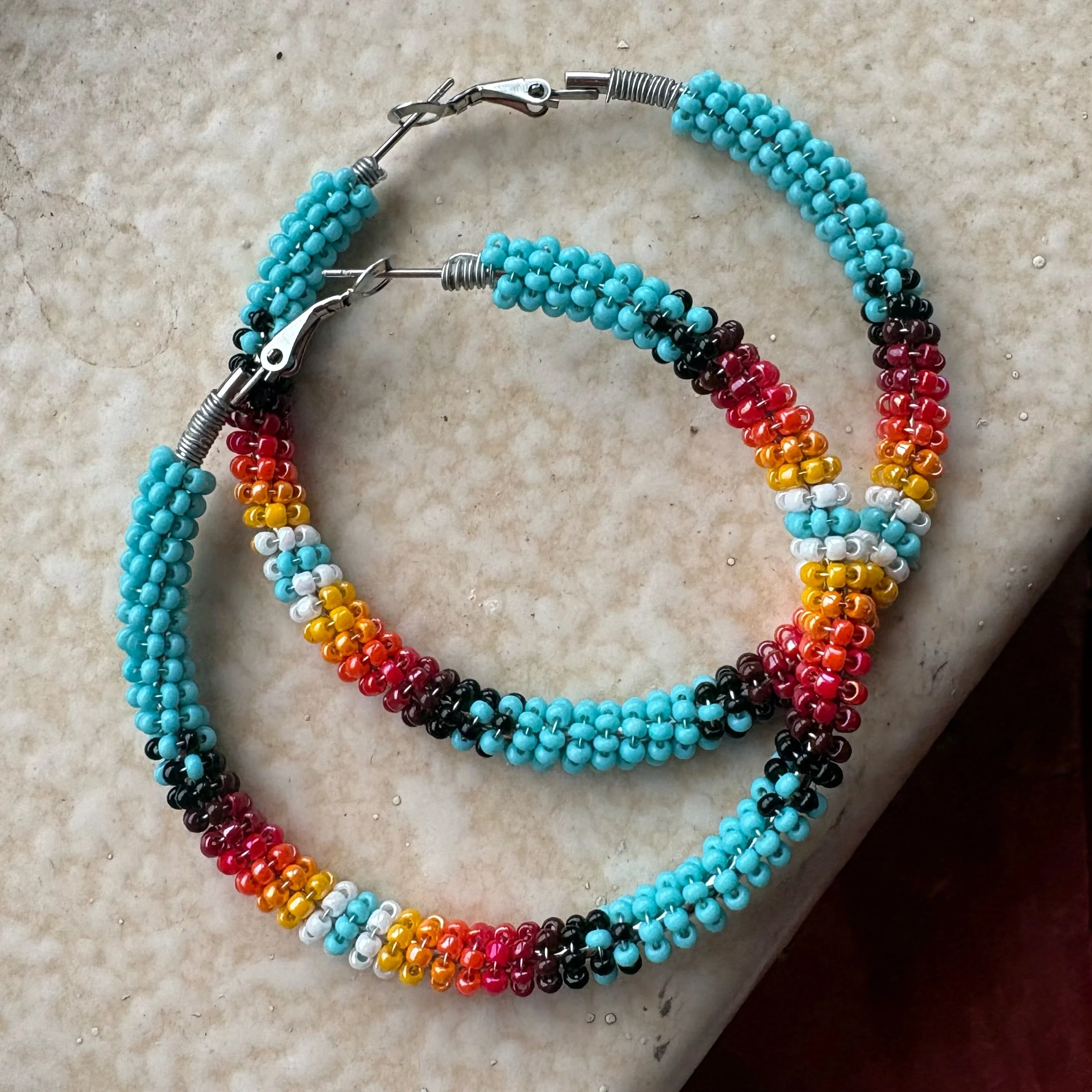 SHOP › Sky blue fire design hoops Image 1 of 3 Image 2 of 3 Image 3 of 3 Sky blue fire design hoops $40.00 Stainless steel hoops, blue seed beads with fire design. Purchase Added! Stainless steel hoops, blue seed beads with fire design.